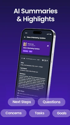 MeetGeek isn't just a voice recorder or a notes app; it's an all-in-one solution designed to enhance your productivity. With MeetGeek, you can effortlessly record audio during any video call & get comprehensive AI summaries, making it easier than ever to keep track of key information & action items.
