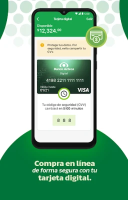 Comprar en línea en los distintos sitios web con tu tarjeta virtual es seguro, usa el CVV dinámico de tu tarjeta digital que encontrarás en la App de Banco Azteca.