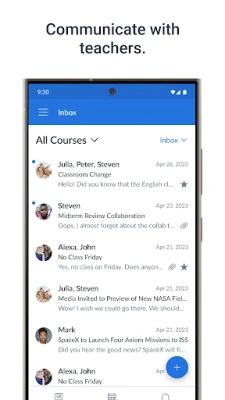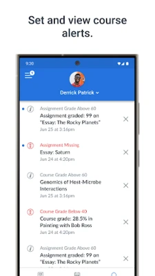 • View assignment descriptions and due dates • Set reminders for assignments • View assignment grades • View course grades • Set grade alerts • View course announcements