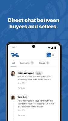 • Get in on the action: Buying and selling cars isn’t just about numbers—it’s about connections. During live auctions, you can comment, ask questions, and engage directly with other dealers. It’s a real-time, interactive experience that makes every auction feel like you’re right there in the lane.
