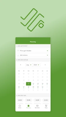 Download de FOLKS GYM app met de volgende functionaliteiten: