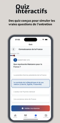 Entraînez-vous avec plus de 200 questions fréquentes, extraites de vrais entretiens et du livret officiel du citoyen. Corrigés et explications inclus.