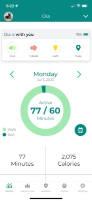 Use the app to remotely turn on an LED light on the front of the Link pet wearable to keep your pet safe and noticeable outside at night. Use the app to remotely turn on tones, which can be used as a training aid.