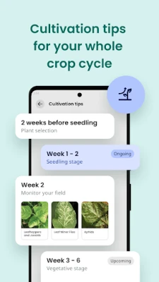 Get the most out of your crops by following effective agricultural practices and applying preventive measures. The Plantix app gives you an action plan with cultivation tips for your whole crop cycle.