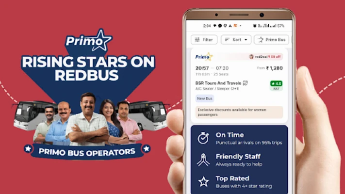 ⭐Primo Certified Buses: High-rated buses with best-in-class experience, i.e. 4+ Rated Buses, Friendly Staff, & On-time!