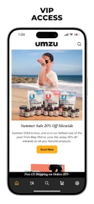 BRAND NEW! Use the UMZU app to shop for all of your favorite UMZU supplements, personal care products, and the rest of our natural products. Easy-to-use, fast checkout, and 10% off your first order on the app when you use Push Notifications.